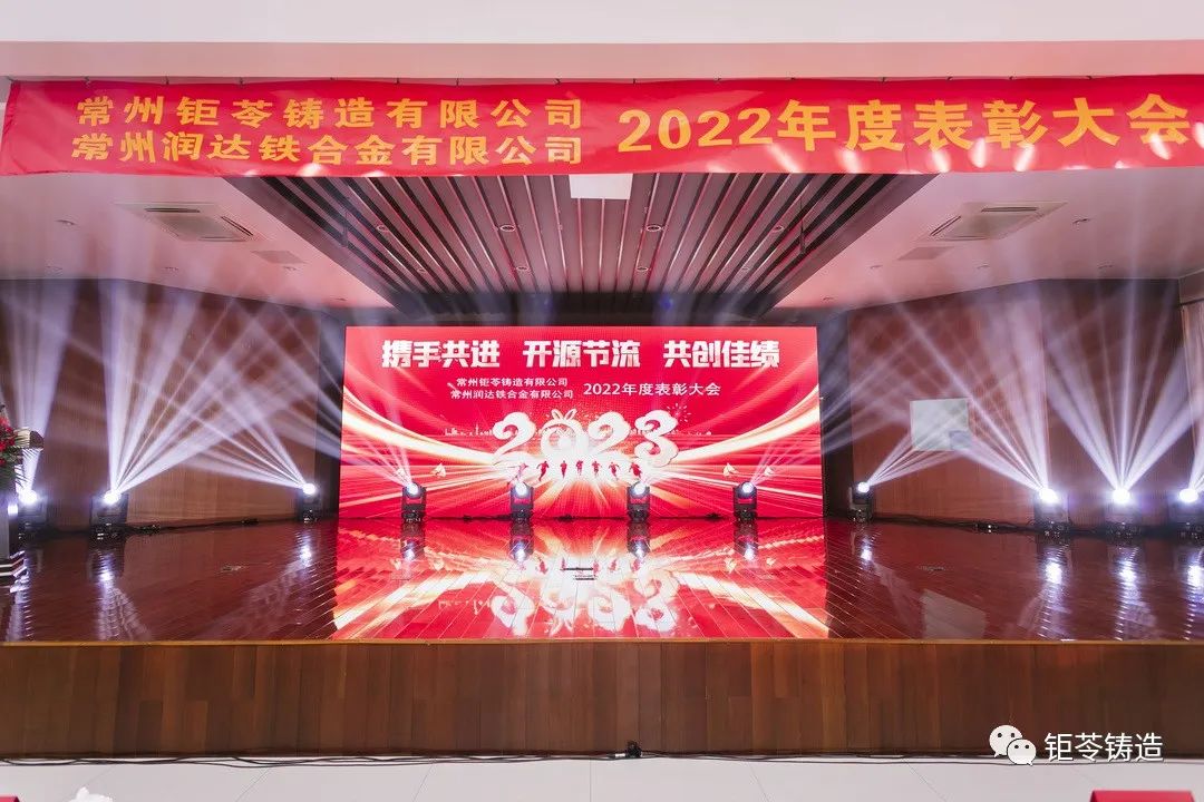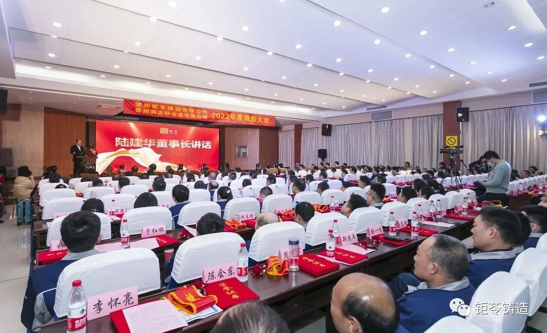 2023年2月26日下午,2022年度常州钜苓铸造有限公司、常州润达铁合金有限公司表彰大会在三河口高中召开。公司董事长陆建华、牟惠娟带领钜苓、润达全体员工欢聚一堂,表彰先进,树立榜样,在企业愿景的引领下,钜苓、润达携手共进、开源节流、共创佳绩!