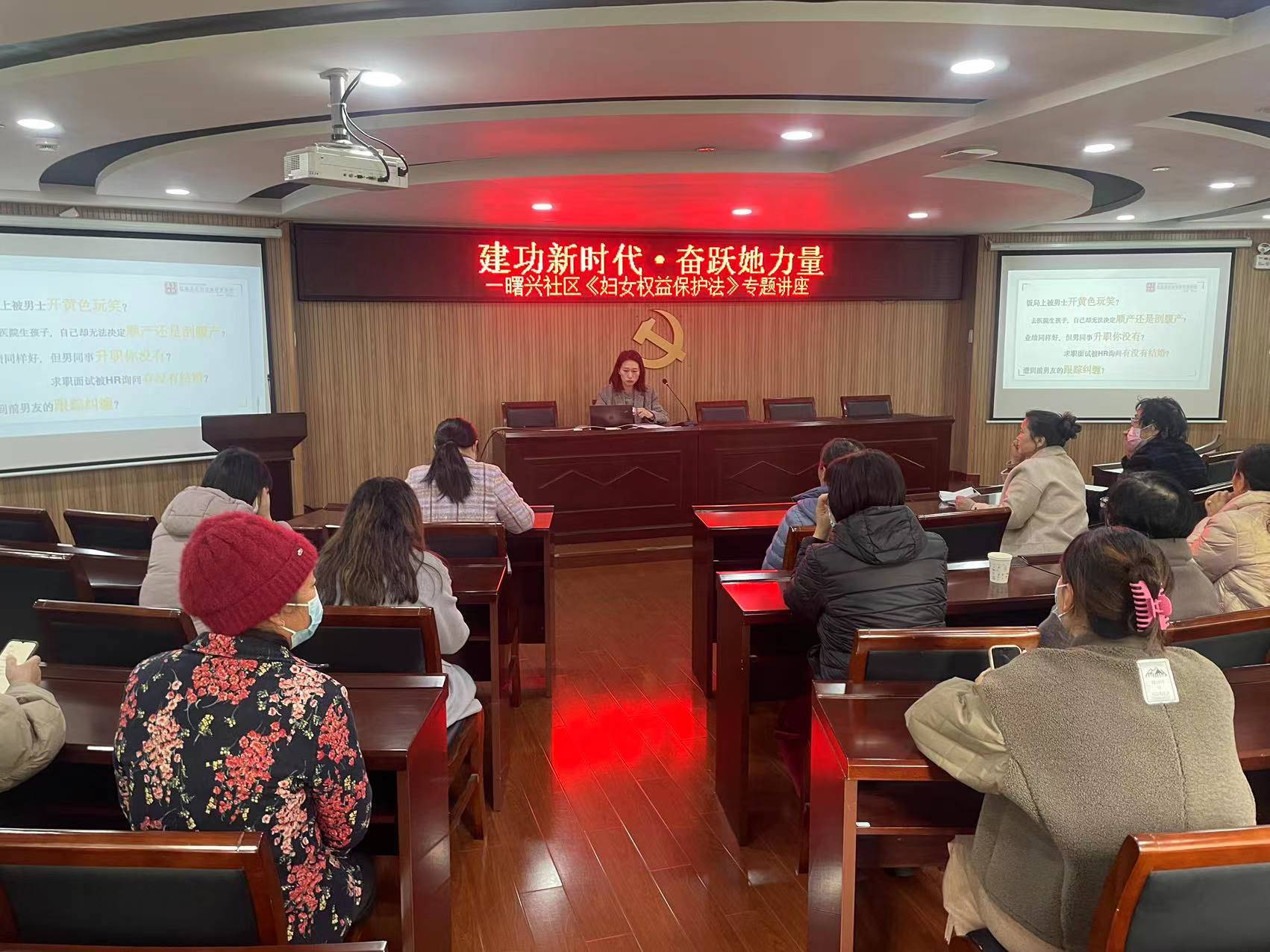 为了提升曙兴社区辖区女职工及妇女同志们维权意识,保障妇女权益,增强妇女法治观念,提升学法、知法、懂法、用法、守法的能力,积极营造关爱妇女的良好氛围。3月7日,曙兴社区工联会组织开展《中华人民共和国妇女权益保障法》专题讲座,对权益保障法的条文进行详细讲解。