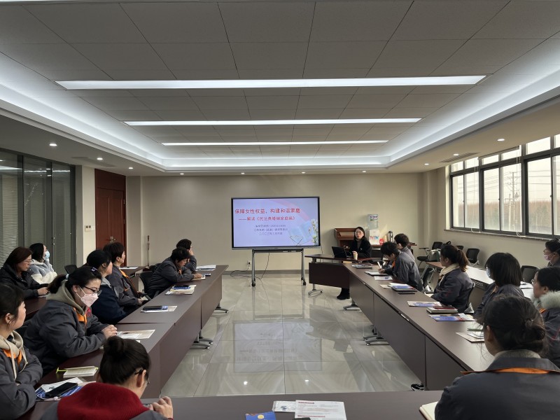 在江苏华凌机电科技有限公司,武进常明律师事务所的朱琴芳律师为女职工们解读《民法典婚姻家庭编》,详细讲解了关于女职工权益保障、劳动法、婚姻法、反家庭暴力法等方面的法律知识。