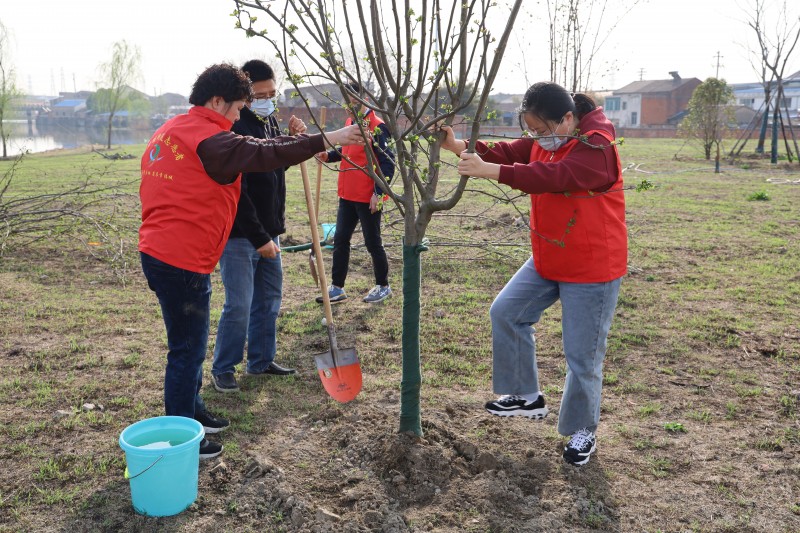 活动中,大家分工有序,团结协作,或扶树挖坑,或培土浇水,现场一片忙碌景象。经过一番辛勤劳作,数十棵新栽的树苗错落有致,在阳光中散发着勃勃生机,为初春的戚墅堰新添了一抹亮色。写有“奋进新征程,建功新时代”“心中有信仰,脚下有力量”等内容的树牌随风摇曳,展示了戚墅堰街道干部职工良好的精神风貌与社会责任感。