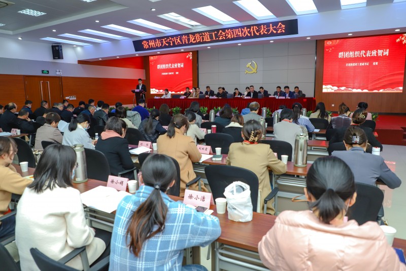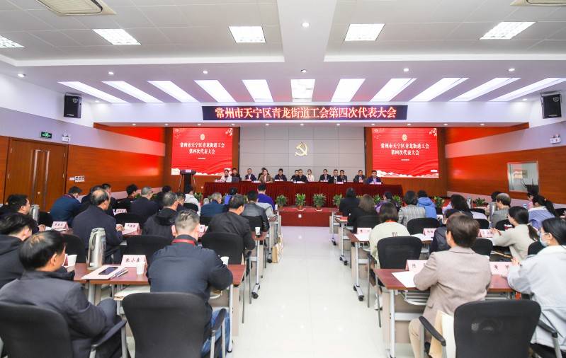 3月28日下午,常州市天宁区青龙街道工会第四次代表大会召开,天宁区总工会党组书记、主席赵浴宇,青龙街道党工委书记郑峰出席会议,67名会员代表参加会议。