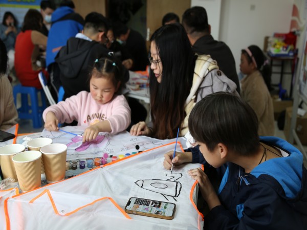 2023年4月1日下午,采菱社区工联会开展“约绘风筝,拥抱春天”亲子风筝diy活动,吸引了16对职工家庭共同参与。