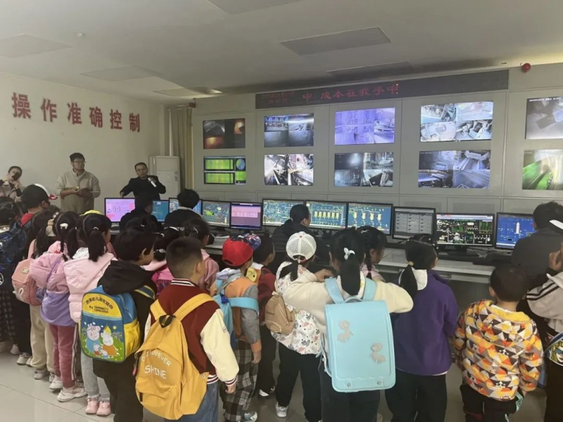 稍作休息之后,孩子们在工作人员的带领下参观了盘固水泥集团有限公司的中控室,观看水泥生产的过程,提出感兴趣的问题,提出了很多感兴趣的问题,直至离开中控室,还在纷纷交流自己的发现与猜想。