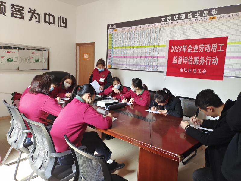 为规范企业劳动用工,防范化解劳动用工风险,推动企业健康发展。近日,常州市金坛区西城街道总工会按照金坛区总工会的部署安排,联合江苏常金律师事务所的律师组成的服务团队先后前往常州金坛大统华购物广场管理有限公司、常州金坛随便点网络科技有限公司等2家企业开展企业劳动用工监督评估专项服务行动。