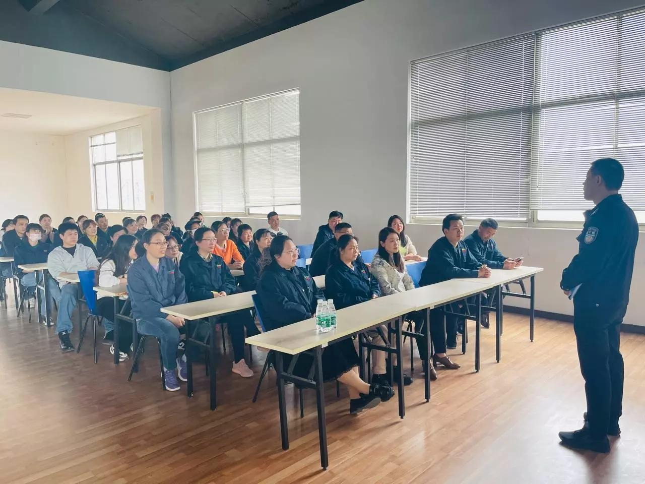 近年来,随着经济环境的变化,国内外诈骗案件频发,特别是网络电信诈骗,此类诈骗的特点是金额巨大、难追回。为保护广大员工的财产安全,格林照明工会委员会特联系辖区派出所民警谭警官,于2023年4月13日中午来我司为广大员工宣传防诈知识。