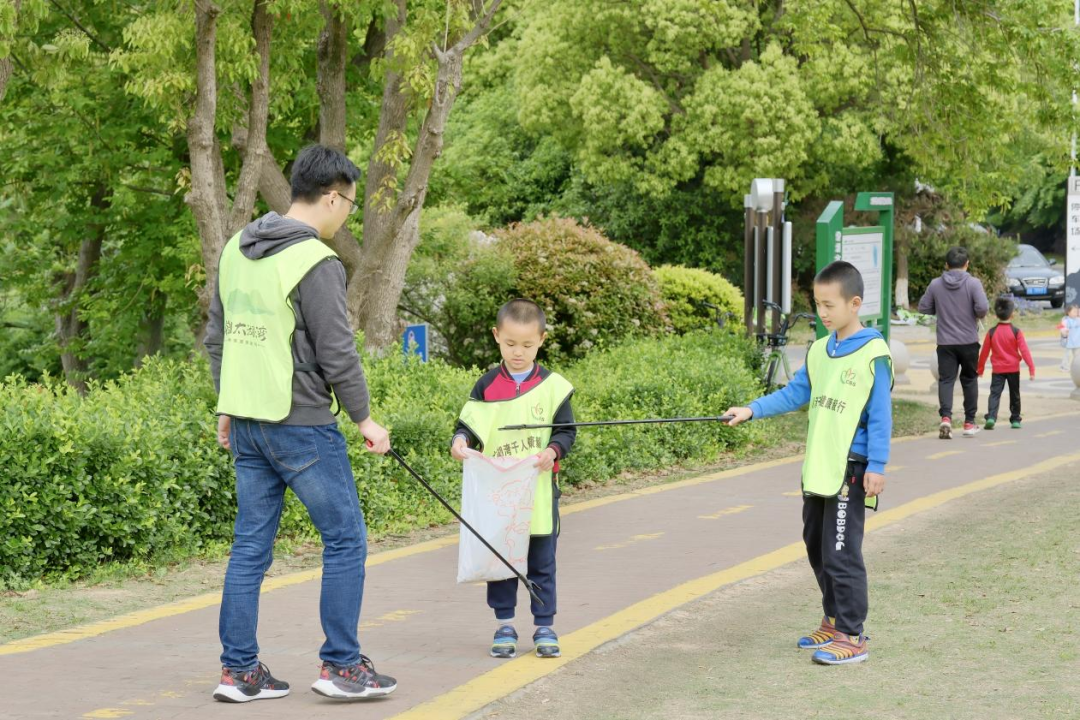 家长和孩子们身着绿色背心,整装待发,小朋友们精神抖擞,拎着垃圾袋,拿着捡垃圾的夹子,沿途不放过任何一个果皮纸屑、烟蒂瓶罐,在家长们的牵引和带领下,孩子们向目标地毅行且益行,不喊累不嫌脏。徐徐清风里,绵延的队伍犹如一条长龙,成为青山绿水间一道最青春、最亮丽的风景线。