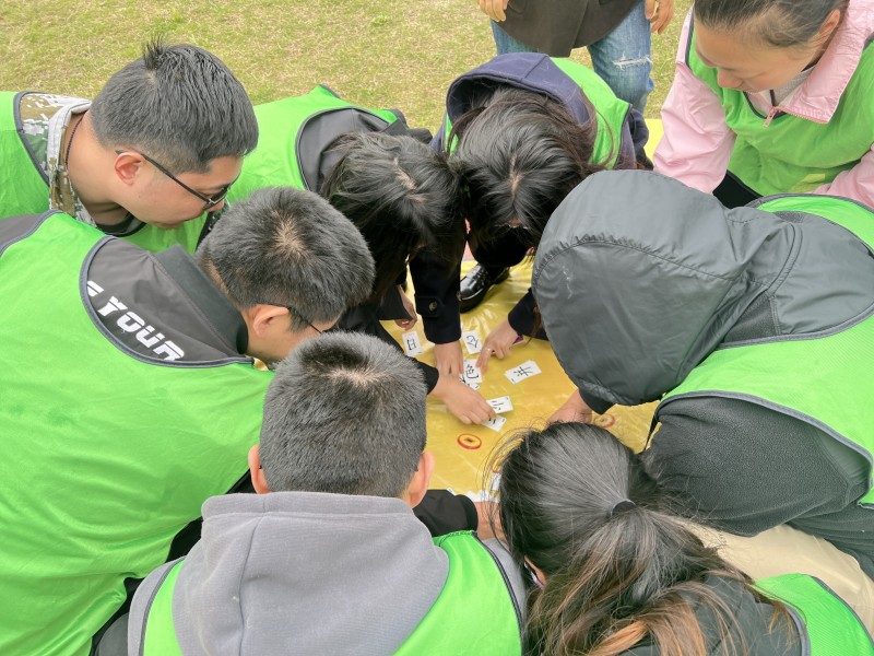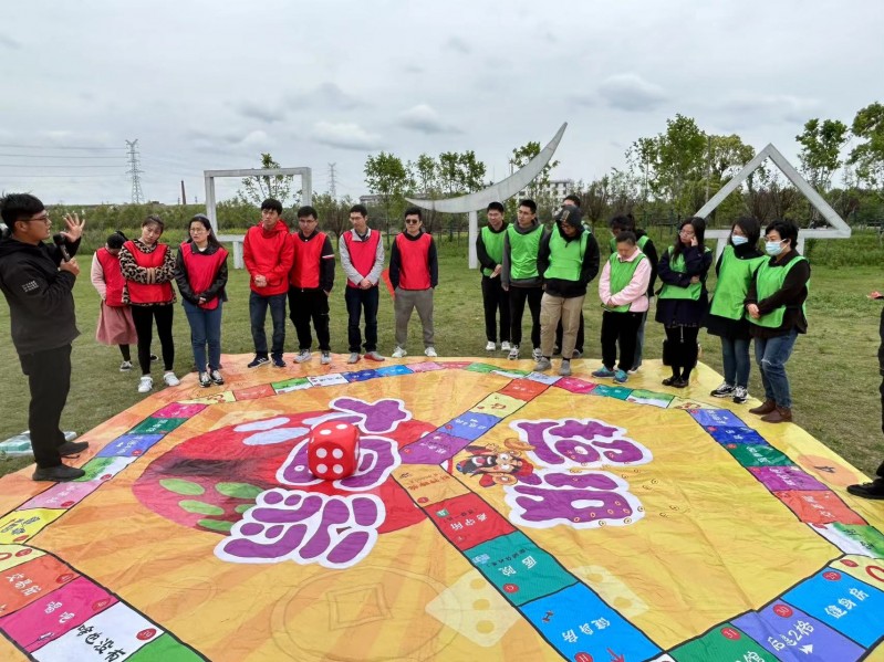 真人版的“大富翁”团建游戏将活动气氛引入高潮。在教练的组织下,大家通过超大尺寸的地图和骰子完成真人大富翁地图、团队挑战、智慧闯关赚取钱币等环节。