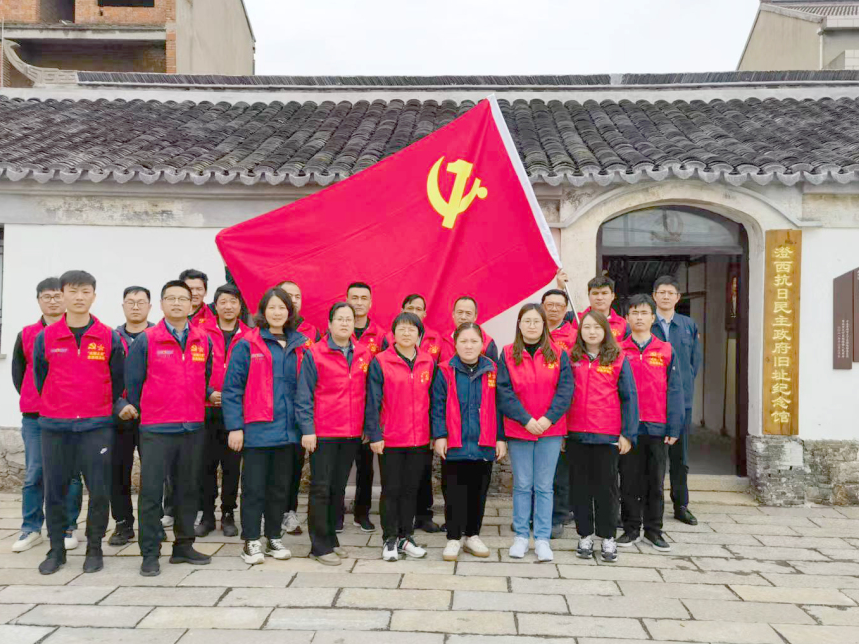 为深入开展党史学习教育,加强党员的党性修养和理想信念,4月25日中午,常州强力先端电子材料有限公司党支部、工会组织部分党员及入党积极分子参观澄西抗日民主政府旧址,开展“追寻红色记忆,弘扬革命精神”的主题党建活动。本次活动由强力先端副总经理魏亮、张维琴带队,同时邀请了“省劳模获得者”王建刚、“市五一劳动奖章获得者”李卫国一起参与了本次党建活动。