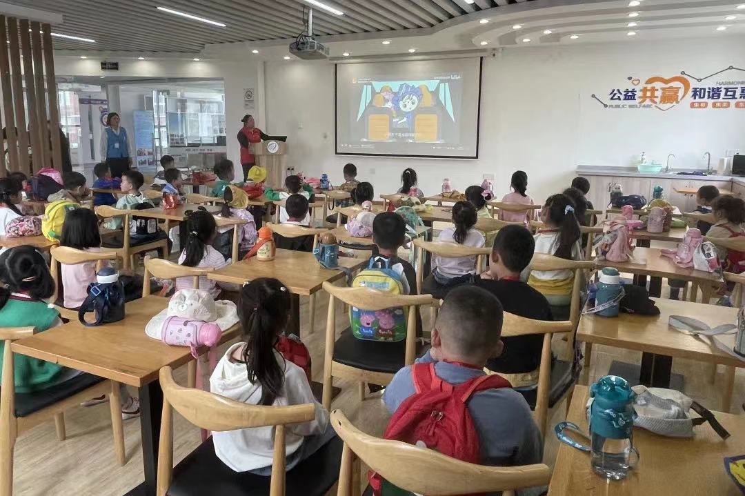 孩子们排着整齐的队伍,在老师和志愿者的带领下,伴随着和煦的春风、暖暖的阳光,依次参观了社区便民服务大厅、社区新时代文明实践站、德法文化广场、家庭成长空间、防灾减灾综合体验馆等。社区的一草一木、一桌一椅、各种各样的设施设备……都吸引着小朋友们去发现和探索。社区志愿者一边向孩子们介绍,一边与孩子们进行交流互动,孩子们参观积极性高涨,争先恐后地表达着自己的体会,现场气氛热烈。