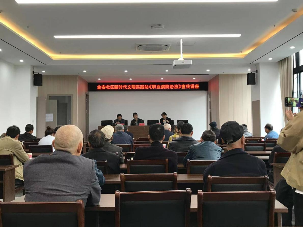 在第21个全国《职业病防治法》宣传周到来之际,常州市金坛区西城街道金安社区开展了“改善工作环境和条件,保护劳动者身心健康”职业病防治知识讲座。
