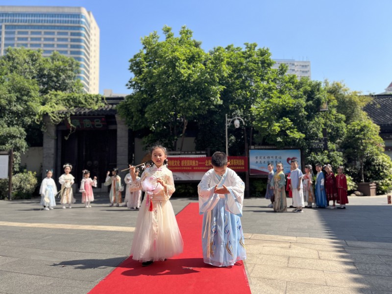 活动中,礼仪老师先为参加活动的青少年普及了汉文化的概念,汉服的分类、特点,并讲述了传统文化中的重要礼仪。随后,孩子们化身为汉服小模特,在红毯上为大家献上一场少儿传统与新中式汉服展示。