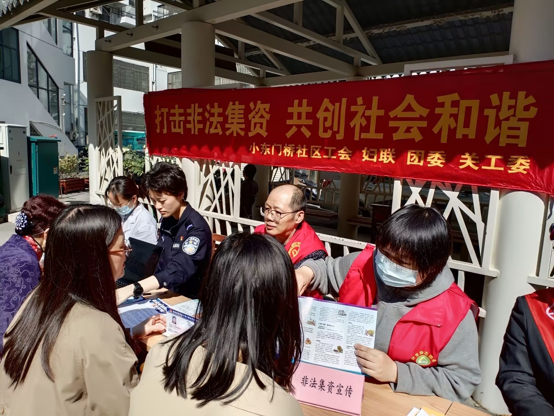活动现场,社区民警和工会志愿者围绕如何识别网络非法集资、防范民间非法集资、远离高收益骗局等内容展开讲解。随后,通过以案说法、接受居民现场咨询、发放宣传资料等形式,让群众提高非法集资判断识别力,了解非法集资带来的危害,增强风险防范意识,防止上当受骗。活动现场气氛热烈,群众参与积极性高。