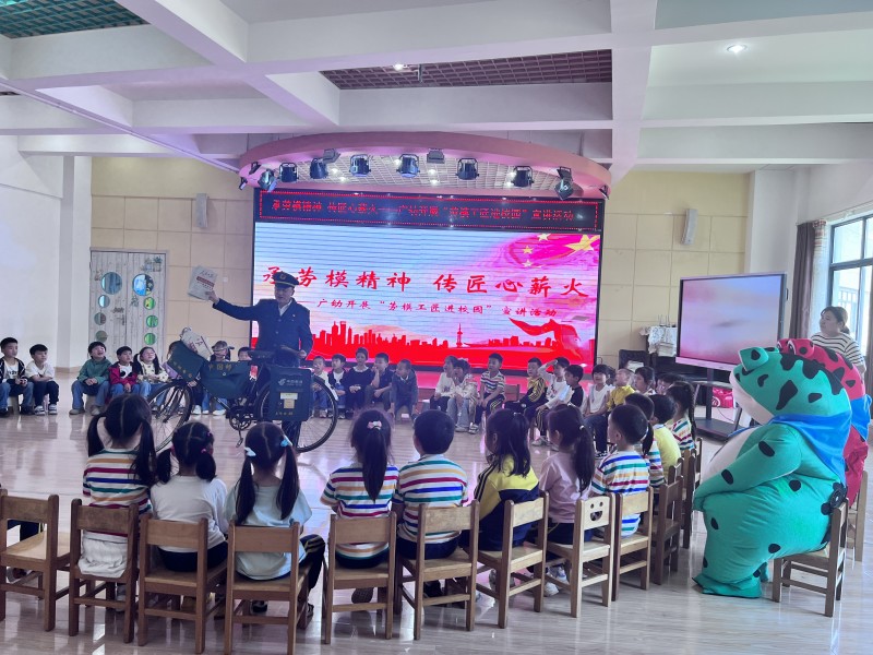 劳动是中华民族的优良传统,勤劳是中华民族千百年来倡导的美德。2023年5月23日下午,乾盛兰庭社区工联会、天安河滨社区工联会联合广化幼儿园邀请常州邮政劳模周乃岳共同开展了“劳模进校园,匠心促成长”活动。活动开始,观看了周乃岳的感人事迹,并介绍了自己的工作岗位和成长经历,分享了他在各自平凡岗位上发扬劳模精神、努力拼搏进取的感人事迹。并向幼儿园的小朋友介绍了邮递员叔叔是怎样进行工作并讲解了十二生肖邮票,小朋友也围坐在他的周围,一个个聚精会神的听着,最后周劳模还给每个小朋友们送上幼儿画报。活动现场气氛庄严而热烈, 小朋友都深受鼓舞,在活动结束后学生争先恐后与劳模合影留念纷纷表示对劳模工匠的深深敬意,还表示在今后的学习中要向劳模榜样看齐,认真学习,努力成长成才,长大以后为建设祖国贡献自己的力量。