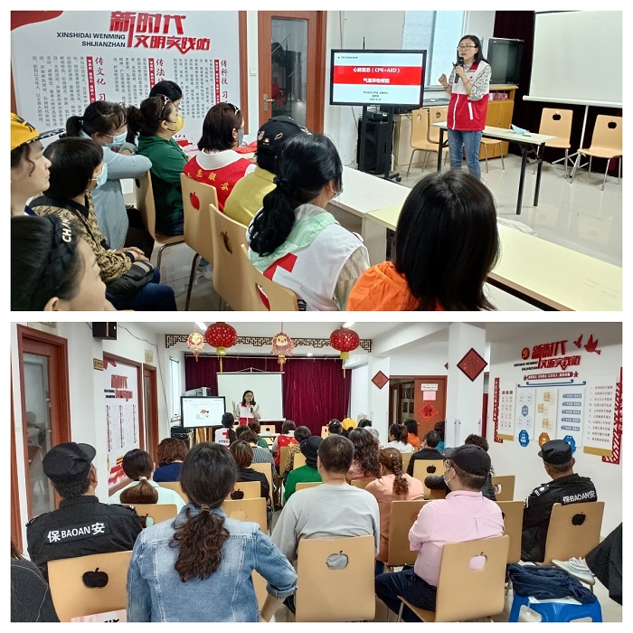 “记住4个急救‘黄金时间’,关键时刻能救命!”。5月25日,红梅街道社区卫生服务中心的医师赵莉婕走进虹景社区,为社区职工、辖区企业职工和辖区居民开展红十字应急救护知识宣传培训,使大家更好的掌握急救知识,提升应急自我救助能力,
