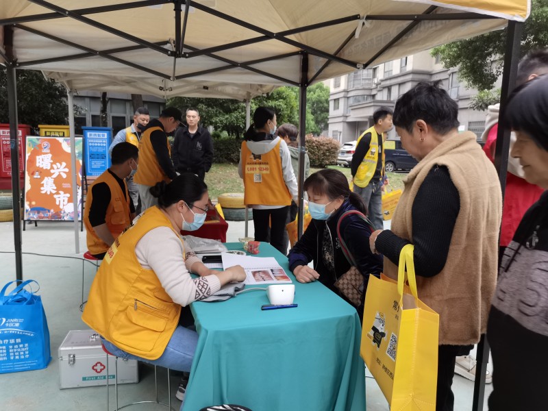 4月15日,曙兴社区工会联合会在名桂坊小区广场为退休职工举办“爱在曙兴”便民集市。