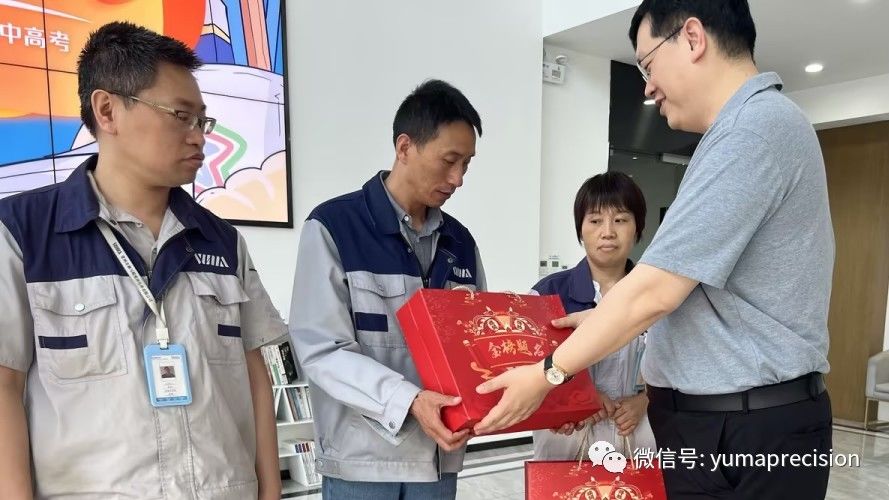 活动中,御马精密总经理郁斌、工会主席先生逐一询问了职工近期的工作安排、子女迎考情况等,并送上了公司精心准备的“金榜题名”慰问品。