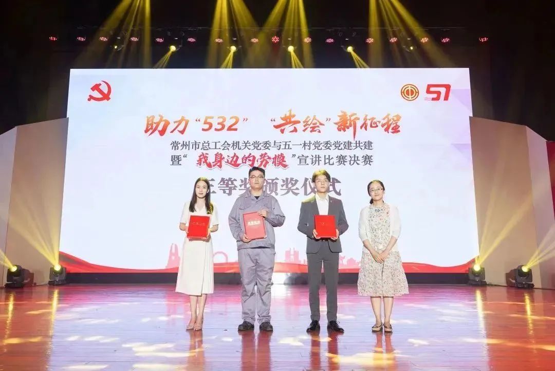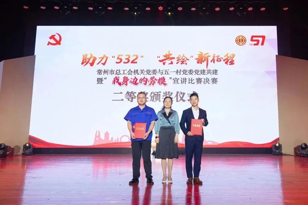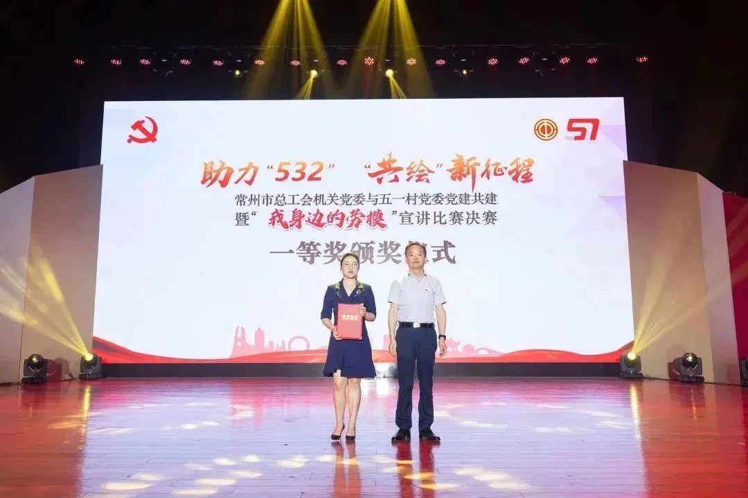 活动现场,市总工会机关党委与横山桥镇五一村党委进行党建共建签约,“我身边的劳模”宣讲比赛决赛同时举行。