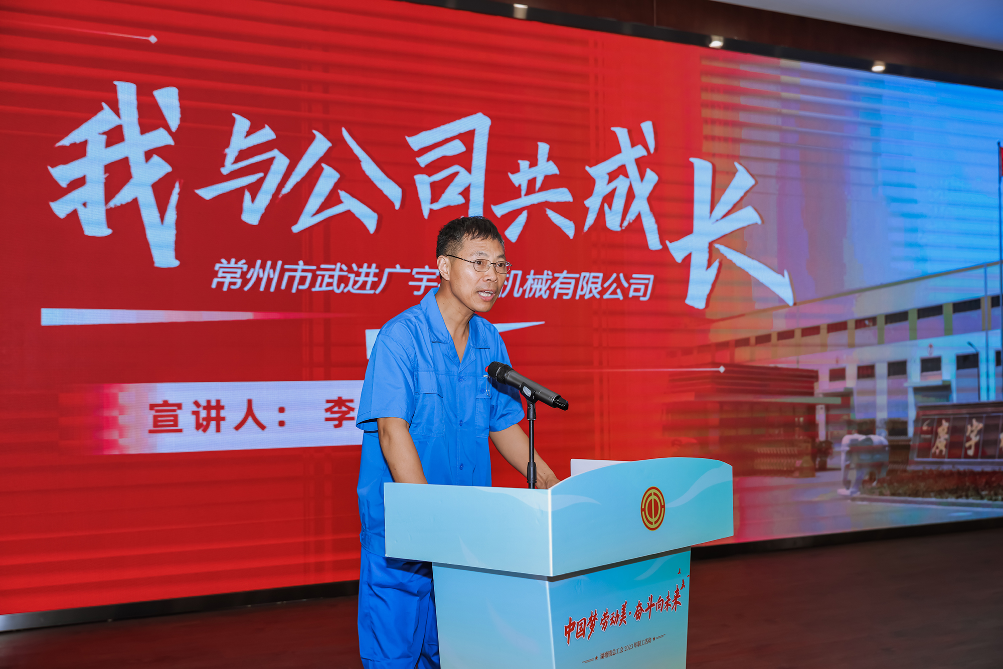 常州市武进广宇花辊机械有限公司省级劳模获得者李杰在活动中分享了他与企业的故事,讲述了他在平凡岗位上的不平凡的事迹。