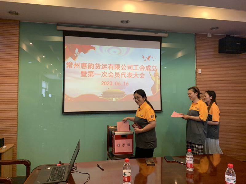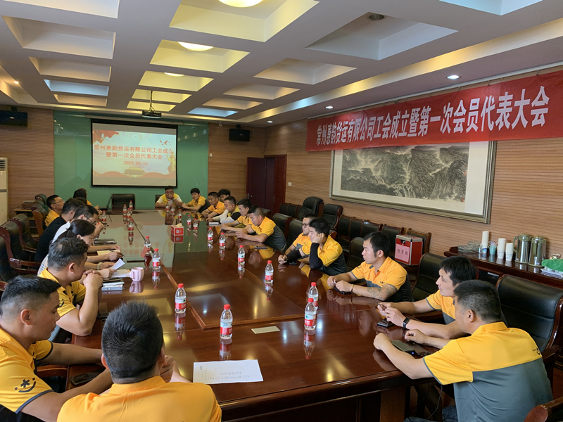6月16日下午,在茶山街道总工会和茶山街道丽华村工会联合会的指导下,常州惠韵货运有限公司工会成立大会暨第一次代表大会圆满召开,丽华村工会联合会主席周国峰、公司20名代表参加此次会议。