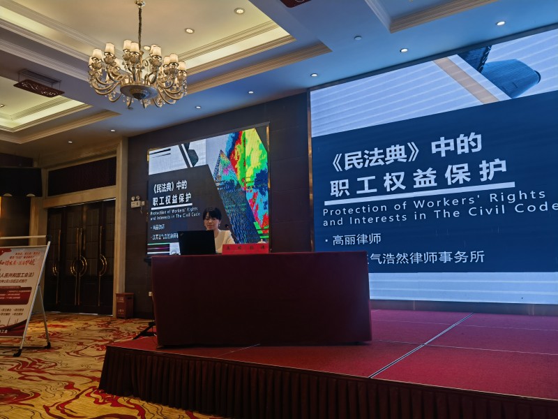 江苏正气浩然律师事务所高丽律师紧贴广大职工的切身权益,全面诠释了《民法典》在保护职工切身权益方面的若干规定和核心要义,把难懂的法学原理通过一个个鲜活的案例,演绎了一堂通俗易懂、生动精彩的普法大课,非常贴近职工的工作与生活。
