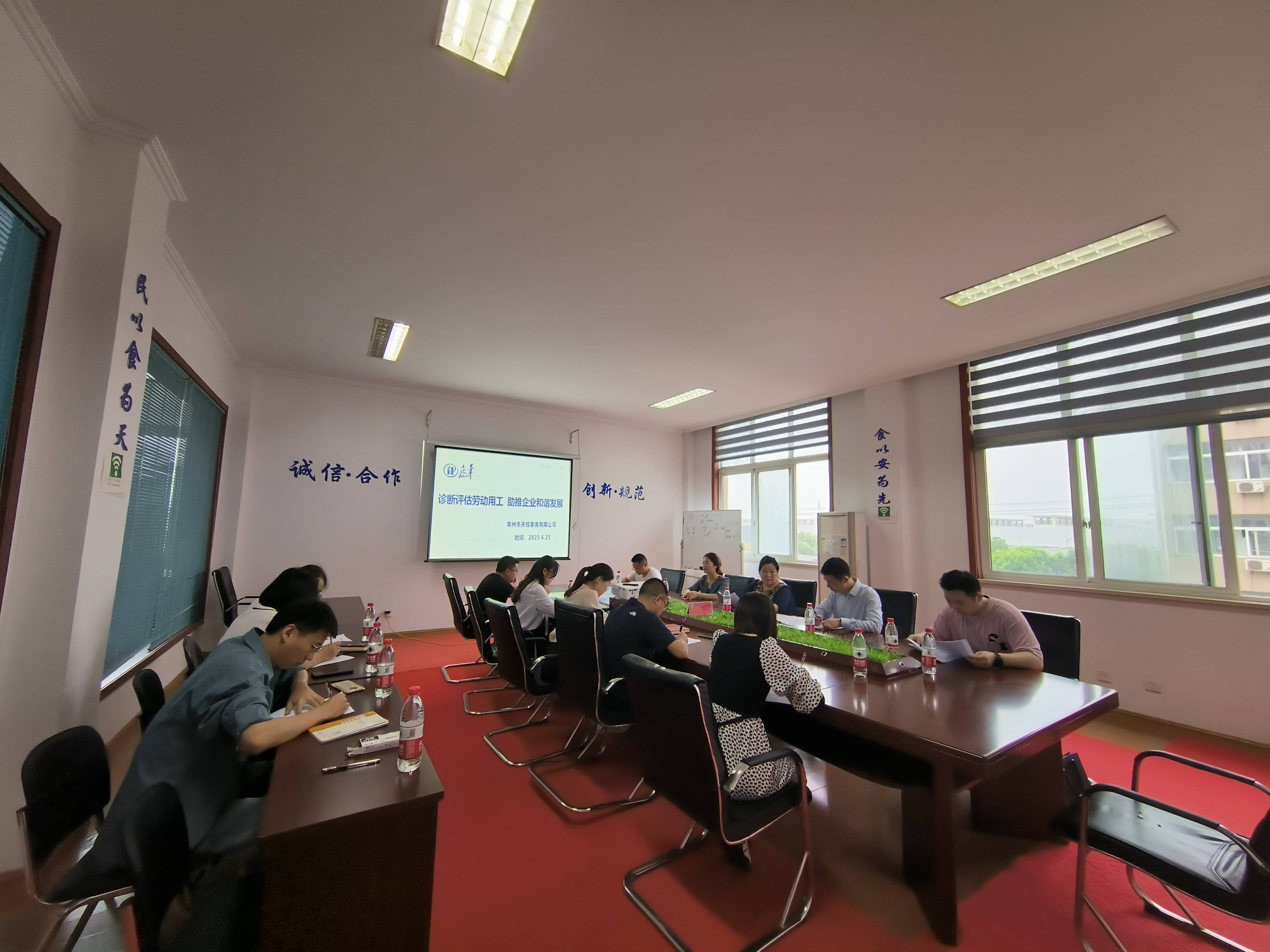 活动中,为了更好地了解企业在发展中的法治需求,帮助企业规避法律风险,通过“面对面”座谈的方式,“法律体检”服务团队对常州天牧家禽有限公司企业劳动合同条款制定、不定时工时解读、员工守则规范等多方面进行深入细致的“体检”,针对企业生产经营活动中遇到的一些问题,从法律层面进行专业、系统的解答,提出可行的解决方法,助力企业稳产、稳工、稳岗、纾困。