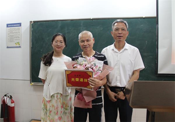 仪式简朴热烈,蒋校长代表全体教师为奚建新老师颁发退休证书并致辞,衷心地感谢他爱岗敬业、恪尽职守、勤勤恳恳地战斗在教学一线,为培养学生和学校工作作出巨大的贡献,衷心祝愿他退休生活幸福安康,希望他退而不休,一如既往地关心学校发展,支持学校工作。青年教师为奚老师深情鲜花,全体教师与奚老师分享了退休这一刻的喜悦与兴奋。