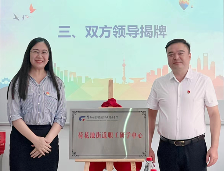 7月3日上午,荷花池街道党工委副书记、总工会主席潘振兴、副主席黄一娟及社区书记、工会专干等16人赴常州纺织服装职业技术学院参加职工研学中心揭牌仪式。纺织学院党总支书记高妍、纺织学院院长郭雪峰、纺织学院党总支副书记史京军、纺织学院副院长曹红梅以及教师代表10余人参会。