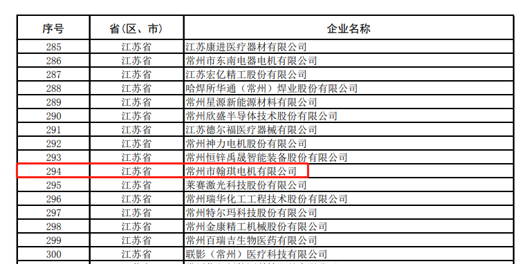 7月14日,工业和信息化部发布了第五批国家级专精特新“小巨人”企业复核通过企业公示名单,常州市翰琪电机有限公司上榜,是横林镇首家获得该项国家级荣誉的企业。