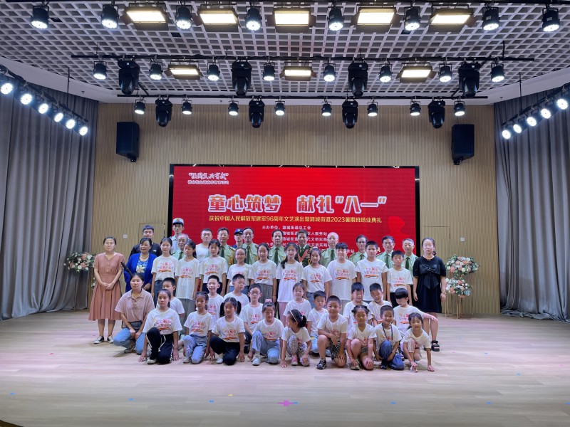 时间脚步匆匆,不知不觉间,2023年潞城街道公益暑期班接近了尾声。恰逢中国人民解放军建军96周年纪念日,进一步加深军民鱼水情,构建拥军爱民的社会新风,7月31日下午,由潞城街道总工会、新时代文明实践所和退役军人服务站主办,潞城街道兴东社区承办,潞城幼儿园协办的“童心筑梦·献礼‘八一’”文艺演出暨潞城街道暑期班结业典礼在东方实验幼儿园隆重举行。