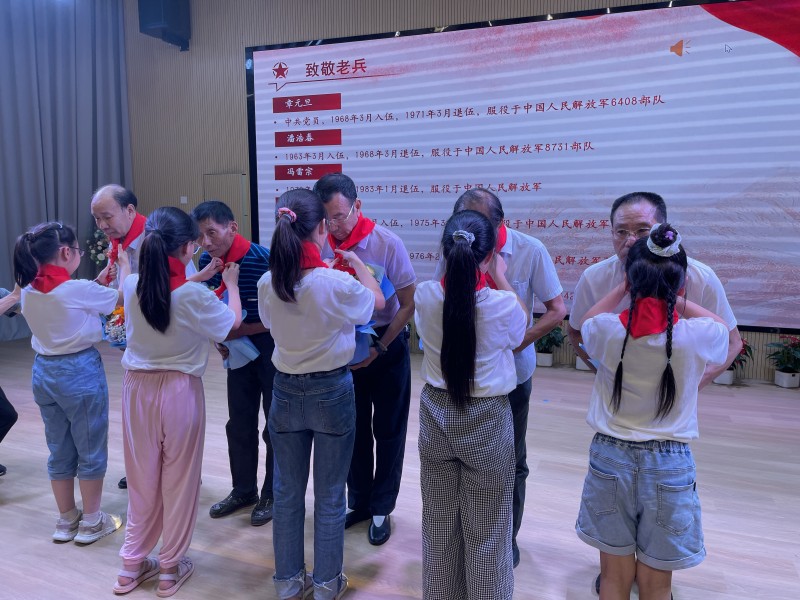 手握钢枪、坚守哨所,共和国的军人们每天第一个把太阳迎进祖国,把平安报给万家灯火。戚墅堰和谐之声合唱团用一曲小合唱《我把太阳迎进祖国》赞颂着战士们守卫祖国的自豪胸怀和对脚下土地的无尽热爱。退伍不褪色、退役不褪志是中国军人始终奉行的准则,暑期班优秀学员代表为潞城街道退伍老兵献上了鲜花并佩戴红领巾,是对老兵们奉献青春、峥嵘岁月的感谢和敬意,更是红色基因、革命薪火在新时代少年人中的传承。之后演唱者高明以一首《军人本色》致敬退伍老兵,铿锵的旋律感人心怀,唱响了老兵们心中不熄的奋进之火。