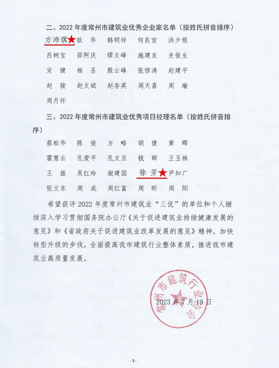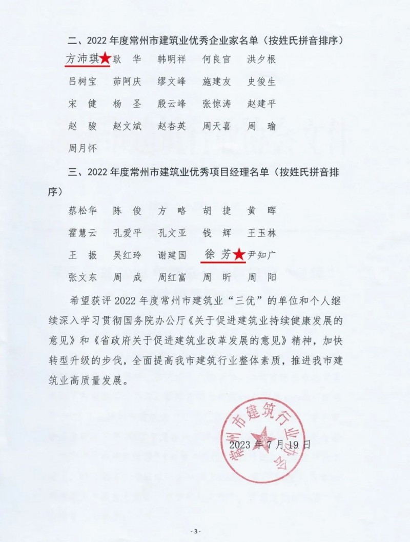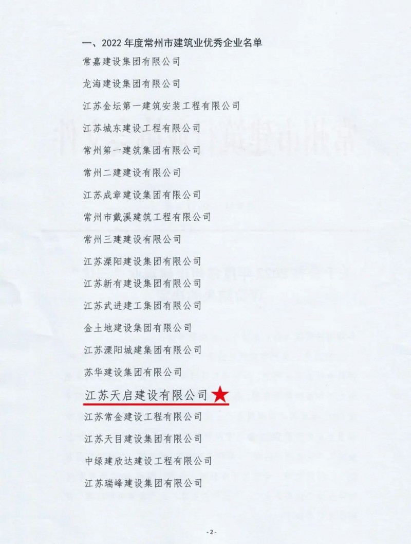 7月28日下午,常州市建筑行业协会召开七届二次理事会议。会上公布了2022年度常州市建筑业“三优”评价结果并表彰颁奖,天启再次喜登“三优”榜单。天启建设荣获常州市建筑业“优秀企业”;方沛琪荣获常州市建筑业“优秀企业家”;徐芳荣获常州市建筑业“优秀项目经理”。这是天启连续两年喜获建筑业“三优”大满贯。