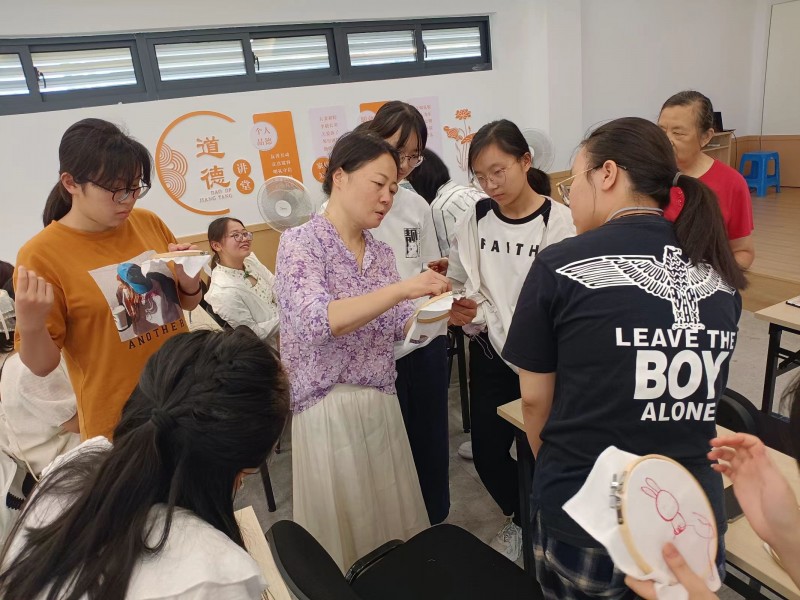 8月10日,舣舟亭社区工联会邀请常州乱针绣传承人狄静走进社区,开展“针尖上的非遗”小手拉大手代际互动活动。