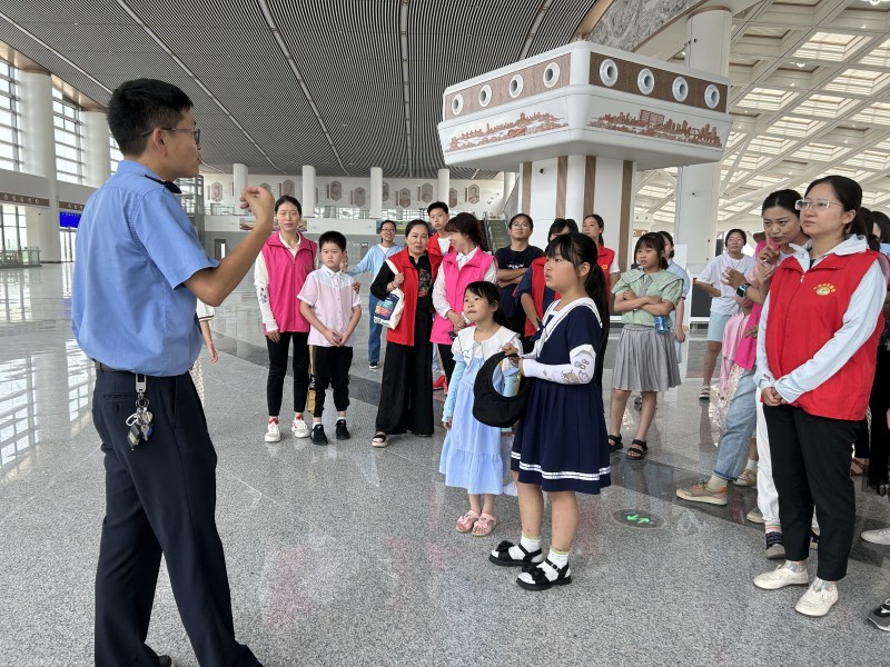 工作人员通过带领孩子们参观高铁站内部环境、学习高铁小常识、掌握高铁安全知识、如何应对应急突发事件等方面,给孩子们上了形象生动的一课。