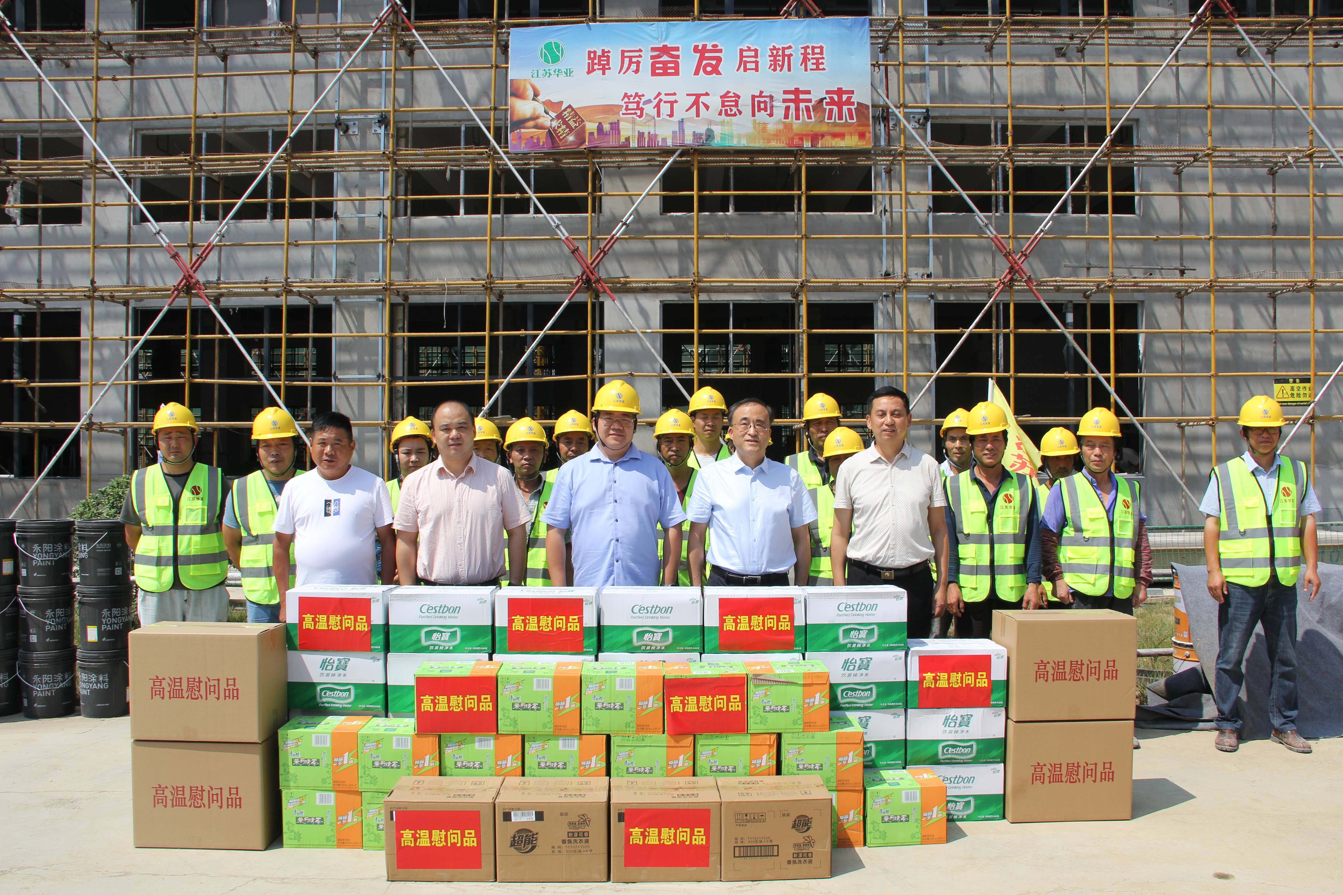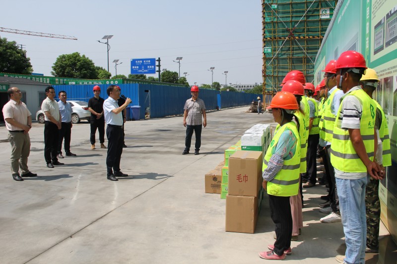 慰问组走访了西安联美(常州)环保设备研发总部项目、江苏华亚工程甲级设计院总部基地项目等园区重点工程项目工地,以及江苏鸿儒人才服务有限公司等园区企业,为高温下辛勤工作的一线工作人员送上防暑降温用品、防污用品、清凉解暑饮料等物资,对他们在高温下的坚守,以及为项目的有序推进作出的贡献表示感谢。