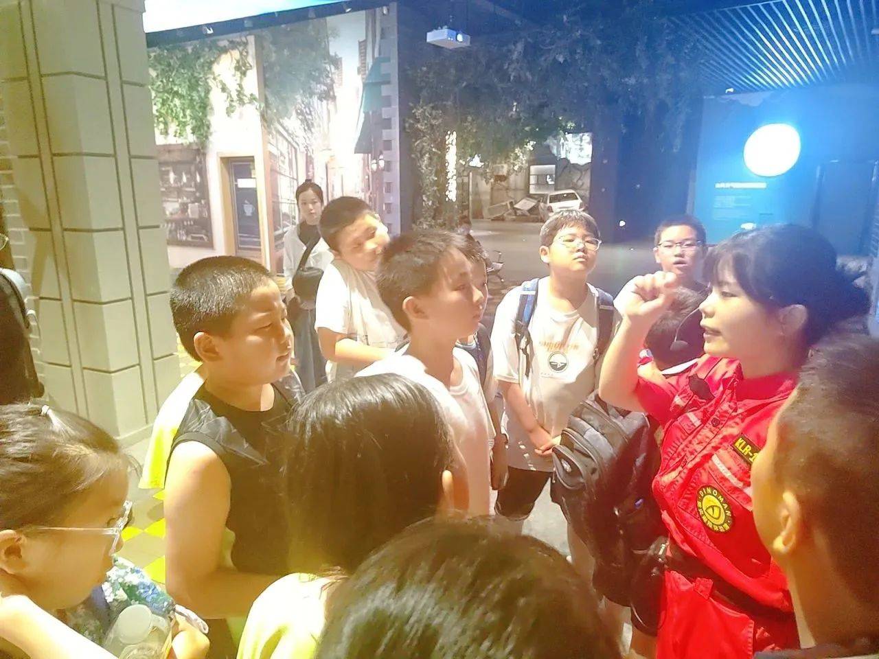 跟随讲解员的脚步,同学们来到了地震体验馆,讲解员为大家地震相关知识;带领同学们开展了地震自护演练,先将左手举至脑后,再用右手绕过后脑抓住左手,选择桌椅下浴室里或角落处蹲下并弯腰,可以大大减少地震时的受伤风险。随后同学们相继进入模拟地震屋,将所学运用到实践中。