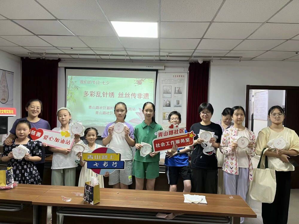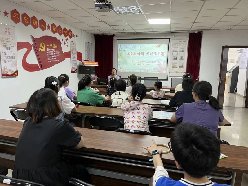七夕节,又名乞巧节,是极具浪漫和文艺气息的中华传统节日。为了弘扬中华优秀传统文化,引导人们感悟七夕蕴含的文化内涵和人文精神,8月22日下午,青山路社区工联会开展“我们的节日·七夕”活动,以“多彩乱针绣 丝丝传非遗”为主题让更多的人能够感受到传统文化的魅力。而与以往不同的是,这次活动特意鼓励职工的子女们一同加入,共同绣出美丽的传承之花。