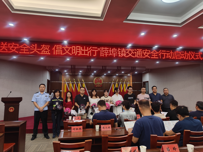 为引导广大企业职工驾驶电动自行车自觉佩戴安全头盔,提高交通守法的意识,打造文明、有序的道路交通环境,8月22日上午,常州市金坛区薛埠镇总工会联合交通大队,在薛埠镇政府4楼1会议室联合开展“送安全头盔 倡文明出行”薛埠镇交通安全协同工伤预防行动启动仪式,薛埠镇政府党委副书记、总工会主席蒋峥辉,薛埠镇总工会副主席周俊,薛埠镇交警中队指导员陈辉,东方盐湖城旅游发展有限公司、大力新科技(江苏)有限公司企业职工代表共30余名职工参加了此次活动。