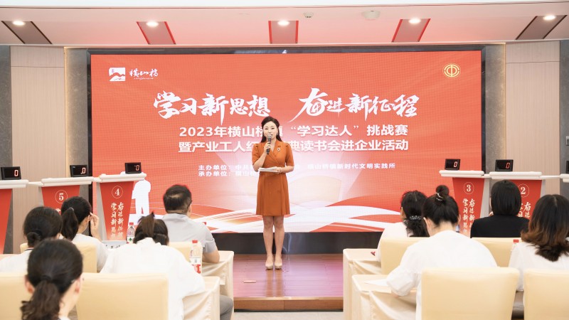 为进一步推动横山桥镇党员干部群众不断深入学习宣传贯彻习近平新时代中国特色社会主义思想和党的二十大精神,激发学习热情,营造以赛促学、比学赶超的浓厚氛围。9月18日,横山桥镇“学习新思想 奋进新征程”学习达人挑战赛暨产业工人红色经典读书会在江南集团宝江国际会议中心火热开赛,12位学习达人共同角逐冠军席位。