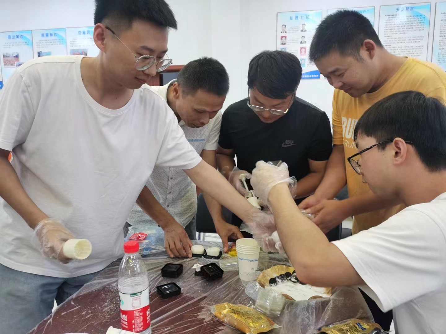 “每逢佳节倍思亲”赋予了中秋节浓郁的“家和”概念,在这个快节奏的时代里,职工们总是因为忙于工作,缺乏陪伴亲人的时间。而今天,大家齐聚一堂,活动现场,别具特色的灯笼高高悬挂,红线穿引的素雅灯谜卡片迎着微风轻舞,烘托出欢乐祥和的节日气氛。另外,提前为大家准备好了月饼制作所需面皮、馅料、模具,专业的面点师傅为职工们详细讲解了月饼的制作方法并作示范。职工们戴好手套和口罩,跃跃欲试。现场很多职工都是第一次制作月饼,按照老师教学的步骤,揉搓面团、包馅,再挑选自己心仪的雕花模具,印出漂亮的图案与形状,过程中大家兴致盎然亲手制作个性化月饼,相互交流制作方法和技巧,学习传统节日文化知识,畅谈对中秋的认识,现场的气氛十分活跃。