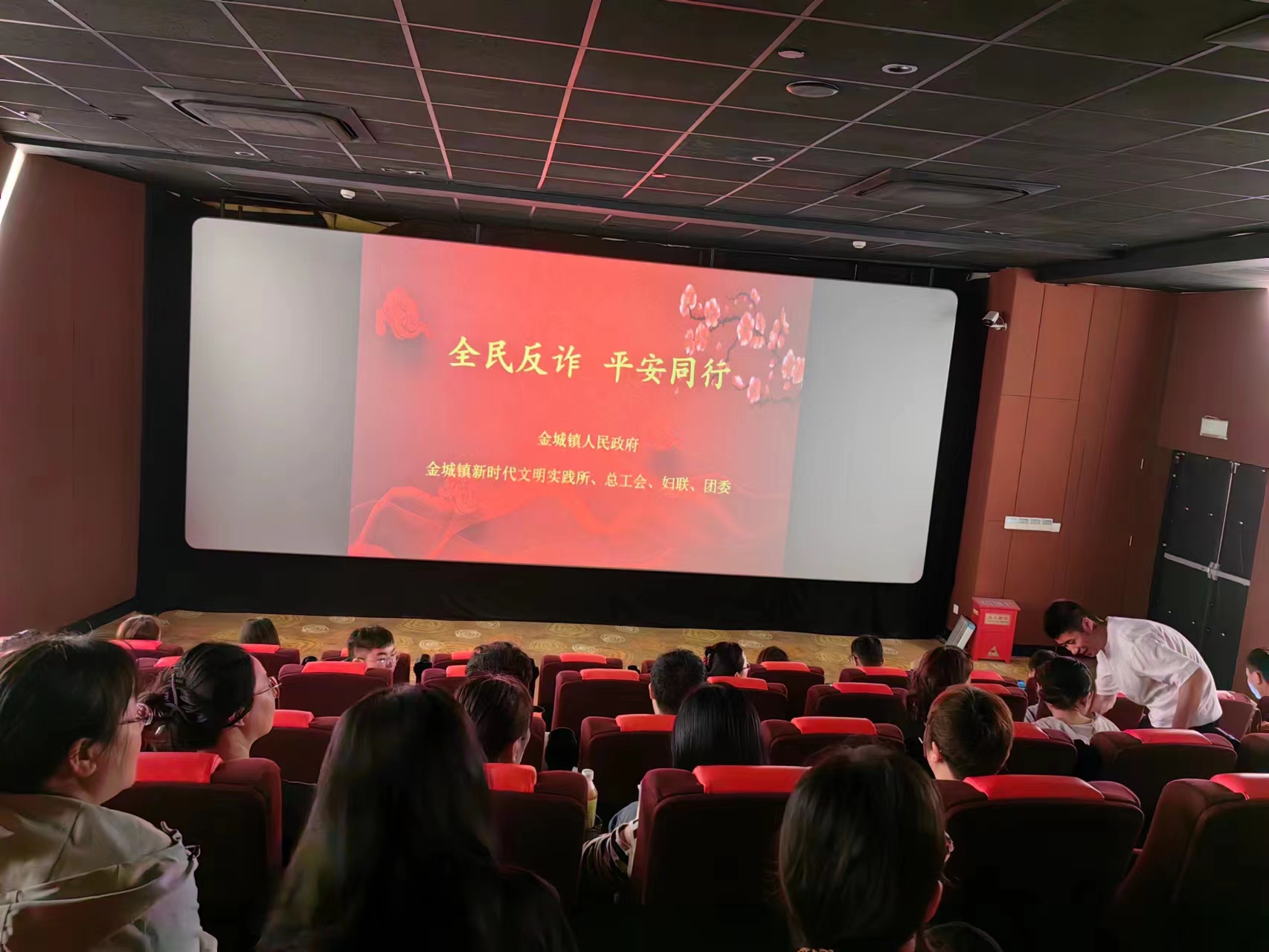 为进一步提升广大职工群众的反诈意识,全力夯实反诈安全防线,9月27日,常州市金坛区金城镇组织部分职工群众走进影院观看电影《孤注一掷》,共赴“反诈之约”。