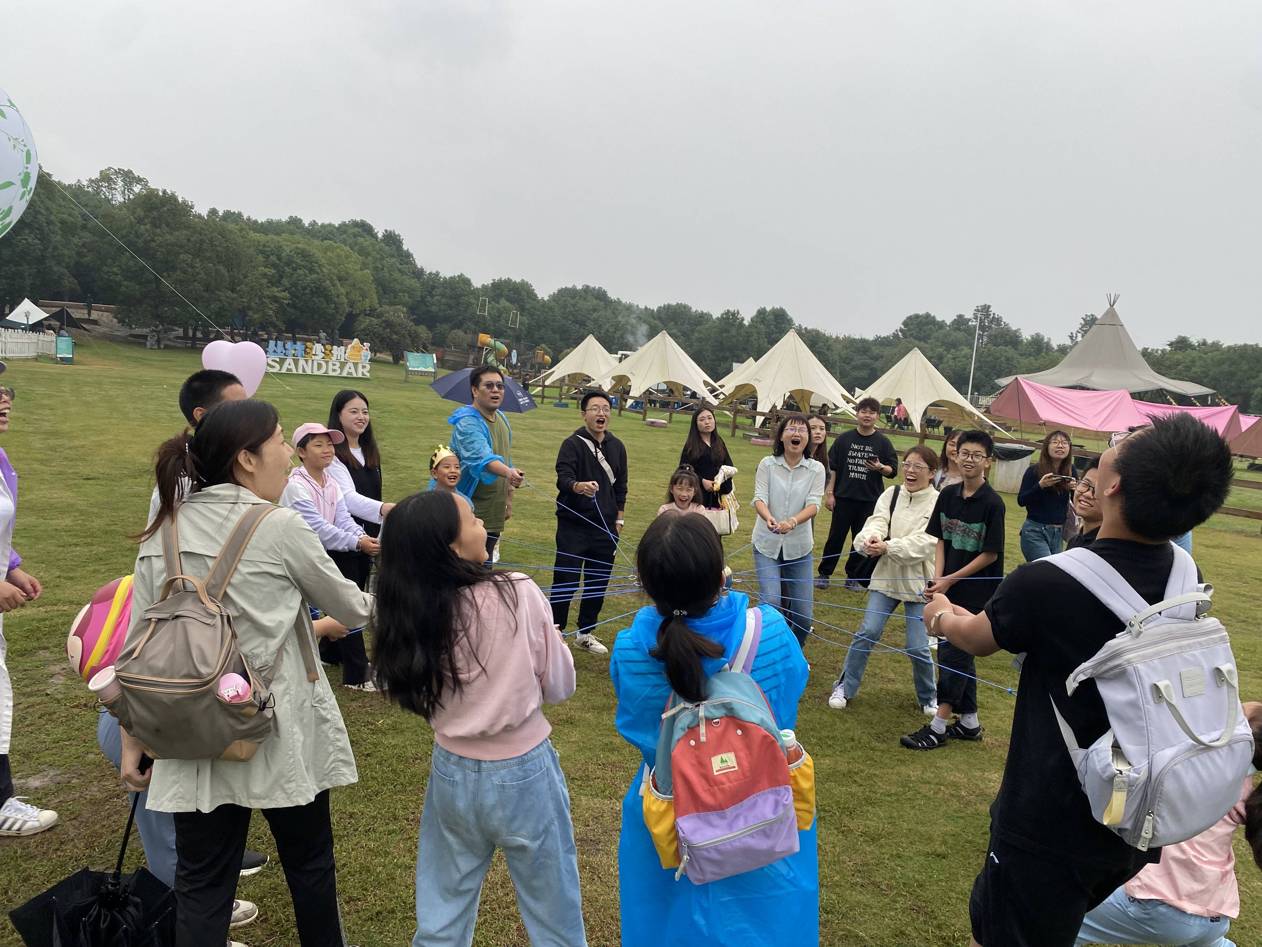 稍后,大家怀着激动的心情,踏上了团建之路。即使天公不作美,BBQ烧烤也在细雨蒙蒙中火热起来,大家分工合作,享受美食的同时也享受着DIY的乐趣。伴随着生日快乐的响起,现场氛围更加热烈,潞城街道总工会为10月份生日的职工们准备了生日蛋糕,职工和孩子们一起切蛋糕、送祝福、享欢乐。随后大家来到青青草原做了开始了团建活动:木棍接力、高山流水、同心鼓等等。