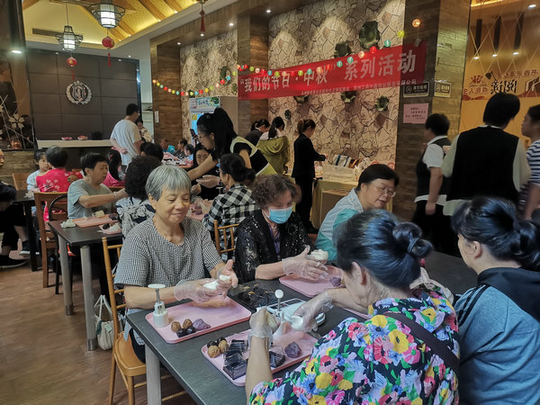 平时安静的九洲新世界君玺图书吧里却传出了欢声笑语,老少同堂,党群欢聚。原来这里在开展手工制作月饼活动。工作人员将材料一一分发,志愿者老师详细演示、手把手教授,大家认真观看、学习,细心、认真制作。活动现场井然有序,一片祥和,活动结束后,大家纷纷展示自己的作品,脸上露出了满意、自豪的笑容。