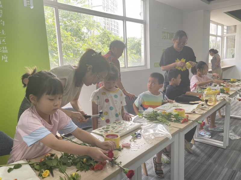 植物拓印技艺是我国非物质文化遗产的重要组成部分,蕴含着独特的文化内涵和精神价值。所谓植物拓印,就是通过物理敲击,将新鲜植物叶片的汁水印在纸、布匹等材料上形成叶片图案。青洋社区工联会邀请辖区内的小朋友体验非遗环创——植物拓印。