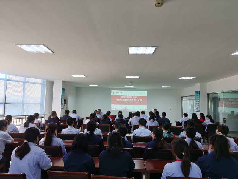为全面贯彻习近平新时代中国特色社会主义思想,加强职工思想政治引领,凝聚建功新征程的磅礴力量,10月11日,“思政教师进企业”活动走进常州市华晟福涛光电科技有限公司。活动邀请常州工学院马克思主义学院副教授卢雷作《深度挖掘活化利用常州革命遗址的历史文化价值》专题讲座,公司领导以及职工代表近60人聆听了本次课程。