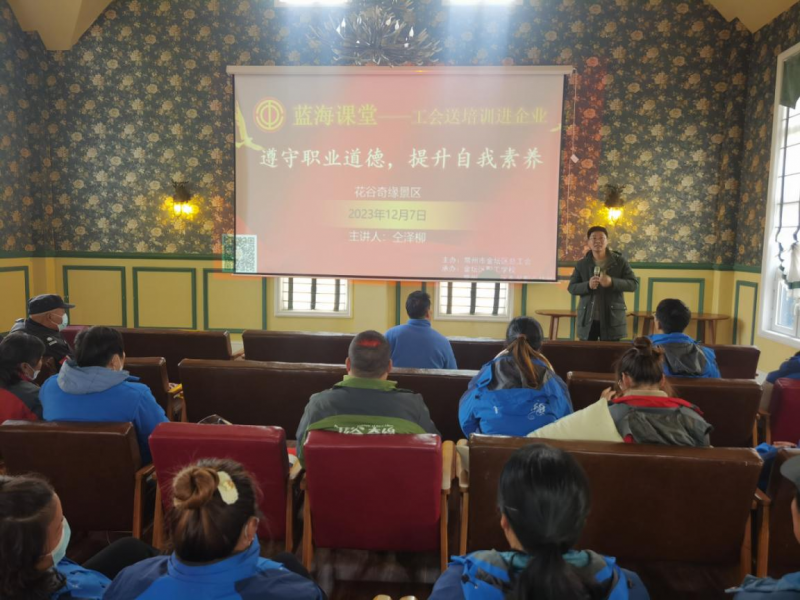 职业道德是每一个从业人员在职业活动中必须遵守的行为准则,它揭示了从业人员与服务对象、职业与职工、职业与职业之间最为广阔的一种社会关系。每一个从业者既有共同遵守的职业道德基本规范,又有自身行业特征的职业道德规范。近日,常州市金坛区薛埠镇总工会蓝海课堂走进花谷奇缘,本次课程主题为“遵守职业道德,提升自我素养”,邀请了副教授、管理学硕士,毕业于河海大学商学院管理科学与工程专业,现任建东职业技术学院客运教研室主任,一直从事经济管理类专业课程的教学管理工作,研究方向为现代管理理论老师仝泽柳主讲。