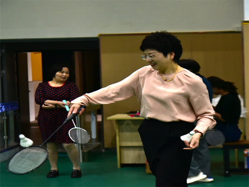 第二环节激情双打。老师们纷纷组队参加,球场上,每一次精准的发球、精彩的扣杀和紧密的防守,都展现出了老师们精湛的球技。男老师们力量十足,女老师们灵活多变。观众们的心随着羽毛球的起落而起伏,现场加油声、欢呼声此起彼伏。