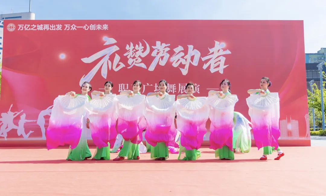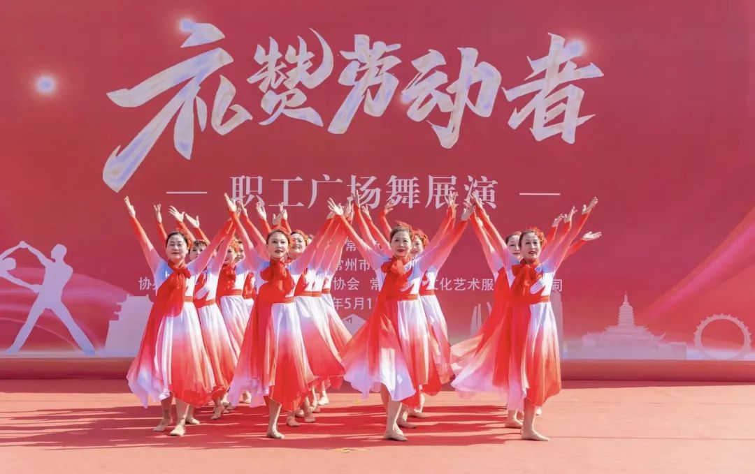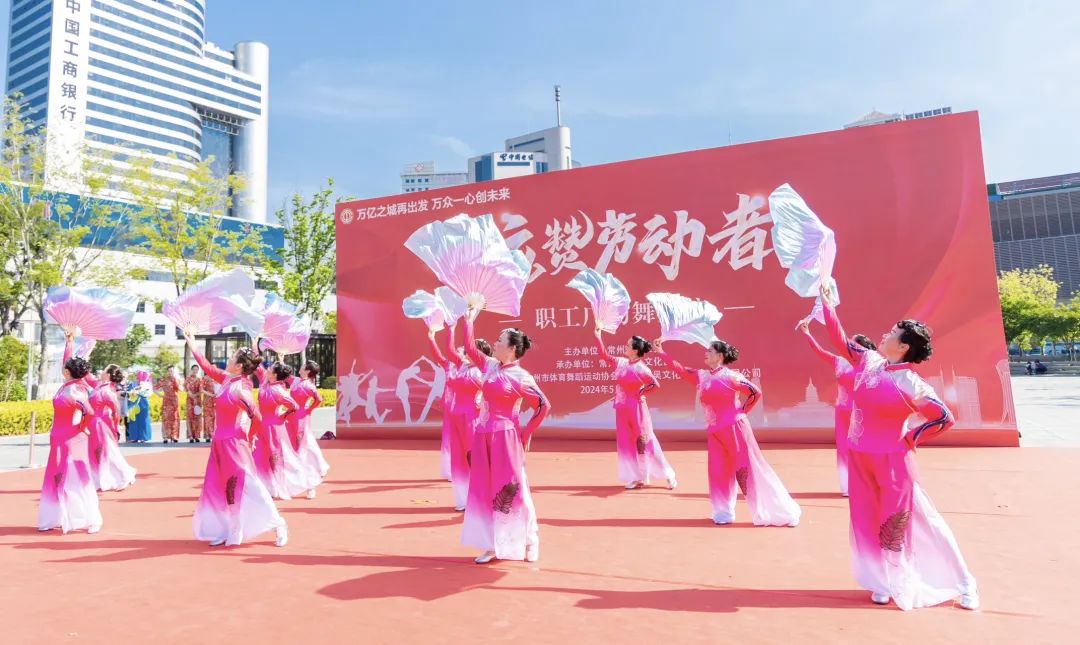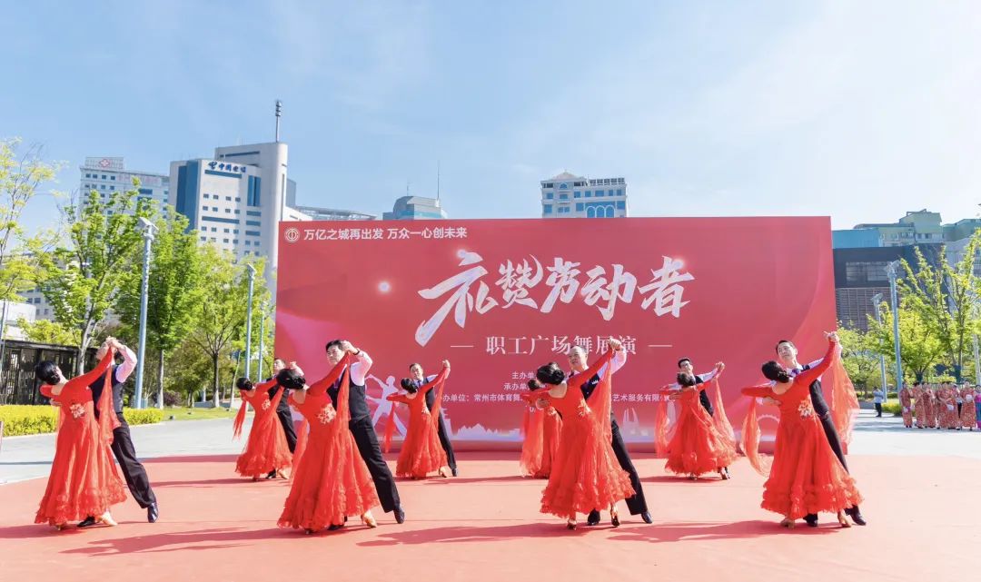 奋楫扬帆启新程、劳动筑梦谱新篇。在“五一”国际劳动节来临之际,“万亿之城再出发 万众一心创未来” 礼赞劳动者职工广场舞展演活动隆重举行。本次活动由美彩国际主办,常州市工人文化宫承办,常州市体育舞蹈运动协会、常州中吴文化艺术服务有限公司协办。来自全市的12支职工广场舞团队齐聚文化宫广场,用舞蹈展现全市劳动者的新时代新风采,激励全市广大职工在万亿之城再出发的新征程上,凝心聚力、拼搏奋斗、 勇争一流,为加快发展新质生产力、书写好中国式现代化常州答卷作出更大贡献。