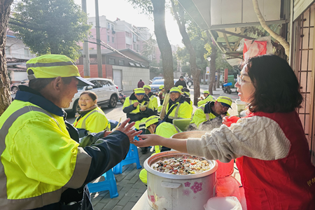 腊月年关近,煮粥待阳春。一碗热气腾腾的腊八粥,不仅驱散了冬日寒冷,也把浓浓的节日祝福,送到环卫工人手中,暖在大家心坎里。此次活动,不仅弘扬了传统民俗文化,更体现了社区工联会对环卫工人的关心,促进了社区的和谐健康发展。