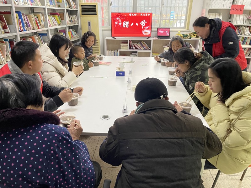 一大早,志愿者们就准备好了腊八粥的食材,有糯米、红豆、花生、红枣等,经过几个小时的熬制,一锅锅汇集爱心的腊八粥就煮好了。志愿者邀请村里的老人、儿童来到村工会一起吃腊八粥,一碗碗热气腾腾的粥,既增加了年味,也传递了社区对辖区老人、儿童的关爱。大家喝着甜甜的腊八粥,开心极了!