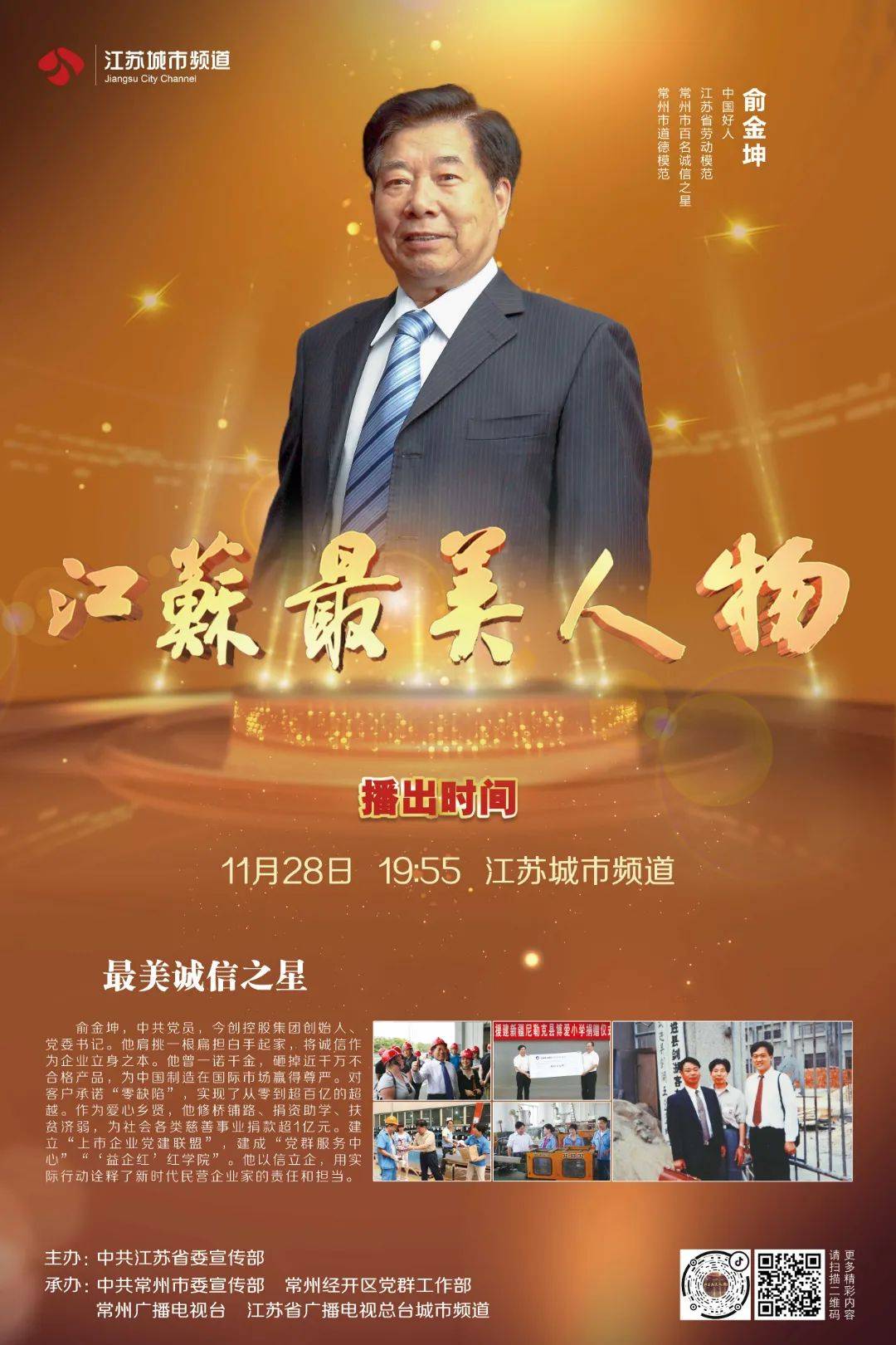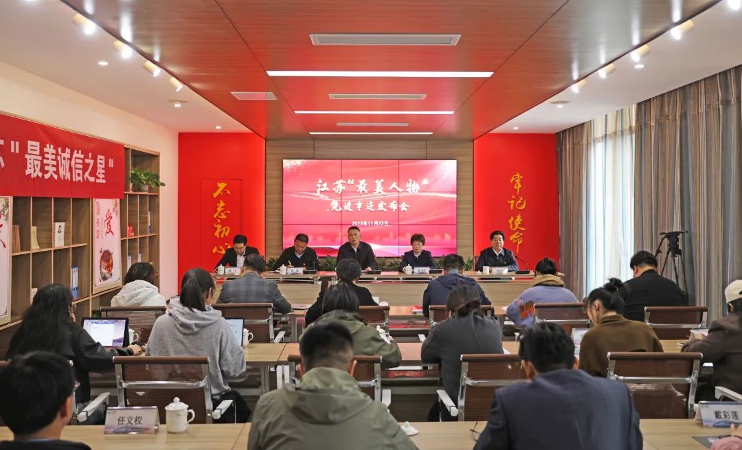 近日,江苏“最美诚信之星”俞金坤先进事迹发布会在集团党群服务中心举行,省委宣传部宣教处二级调研员胡红忠,常州市委宣传部副部长、市新闻办主任孙洁茹,常州经开区管委会副主任吴斑,常州经开区党群工作部副部长、市妇联经开区工委主任戴彩莲,遥观镇党委副书记、镇长薛飞等领导以及相关媒体参加发布会。今创控股集团创始人、董事局主席俞金坤被省委宣传部授予江苏“最美诚信之星”荣誉称号,并参加省广播电视总台城市频道的节目录制。